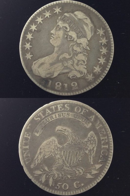 1812 O-110 F15. Gray on darker grayfields. Nice look. Reverse rim disturbances are due to edge lettering and are as made.