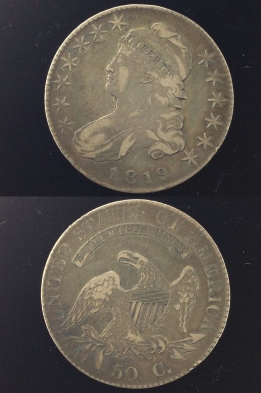 1819 O-114 VF. Cleaned long ago now retoned a medium gray with lighter high points. Just a few marks.