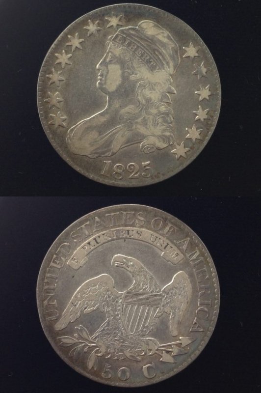 1825 O-111 VF. Flashy with lots of luster around the perimeters on both sides. Gray with gun metal blue. Another coin with nice eye appeal not captured by the image.